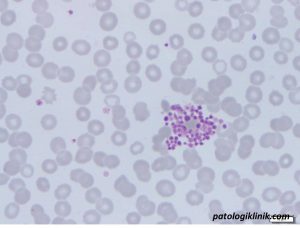 - Terdapat agregat dan clumping trombosit pada apusan darah
