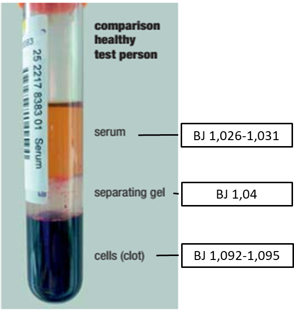 Berat jenis gel pada SST (1,04 g/cm3) berada di antara berat jenis serum (1,026-1,031 g/cm3) dan sel darah (1,092-1,095 g/cm3), sehingga pada saat disentrifus, gel memposisikan diri di antara serum dan sel darah. Gel ini berfungsi juga sebagai penghambat molekul dan protein yang dilepaskan sel bercampur ke serum.