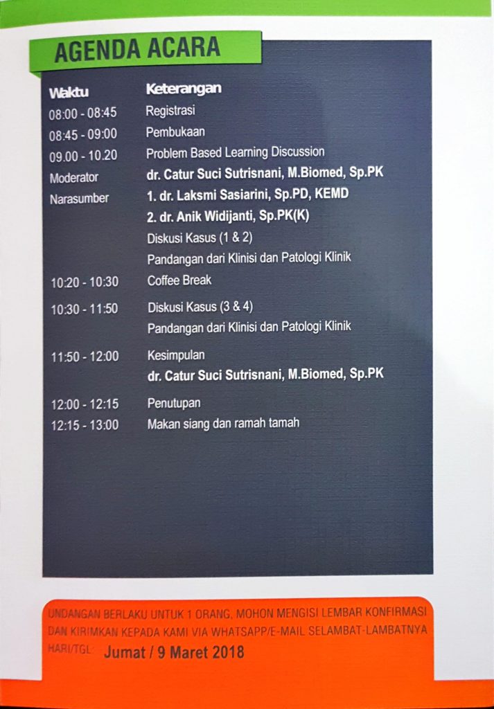 - Peserta : Dokter Spesialis Patologi Klinik dan PPDS PK