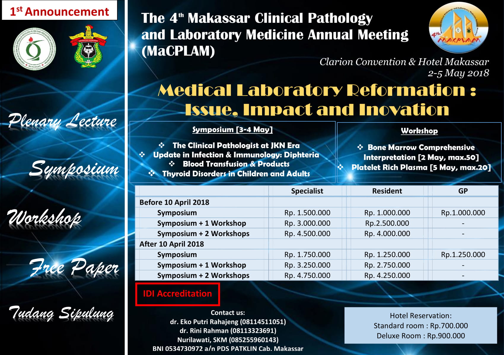 Informasi Seminar The 4th Makassar Clinical Pathology and Laboratory Medicine Annual Meeting