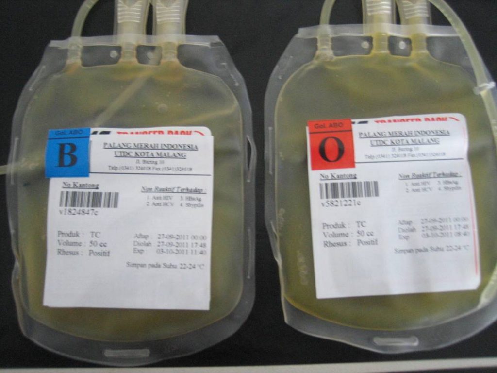 - Tidak boleh dimasukkan ke kulkas karena mengurangi fungsi trombosit