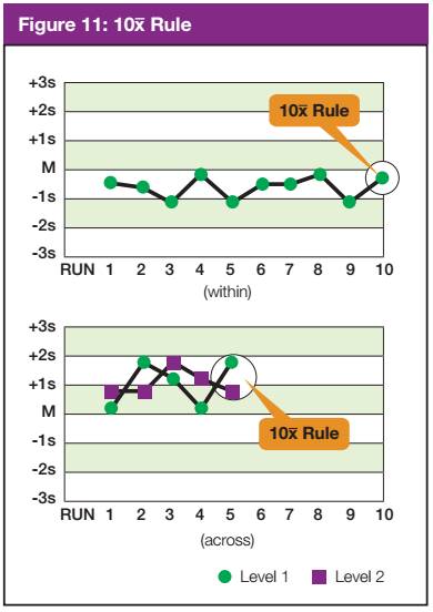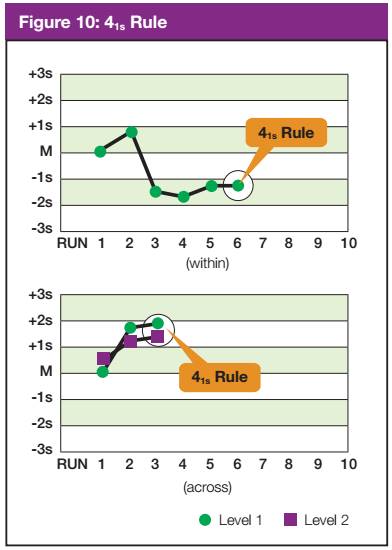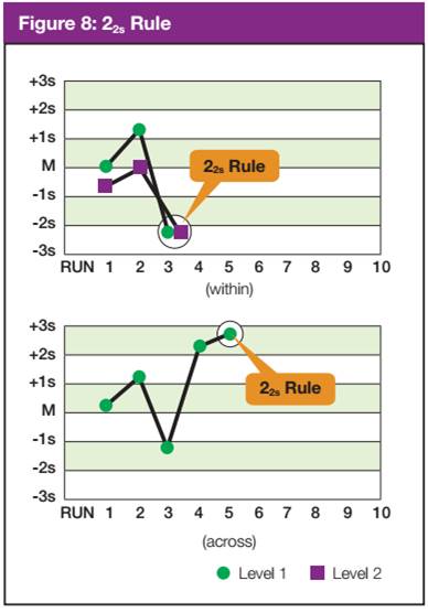 Pelanggaran pada rule berikut di bawah dapat digunakan untuk mengidentifikasi adanya systematic error yang kecil atau bias analitik yang mungkin kurang signifikan secara klinis. Bias analitik dapat dihilangkan dengan cara kalibrasi alat atau pemeliharaan alat.