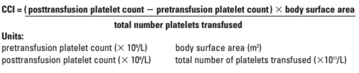 Respon terhadap transfusi TC dianggap adekuat jika CCI >7,5 (jika diukur 15-60 menit setelah transfusi) atau >4,5 (24 jam setelah transfusi).