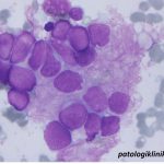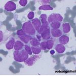 - jumlah banyak, sel bisa terpencar atau membentuk cluster dengan pola roset dengan matriks fibrin berwarna biru hingga ungu muda (Homer-Wright rosettes)