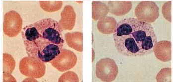 Kita lihat dari gambar di atas, granulasi toksik merupakan granula sitoplasma dari neutrofil yang berwarna biru gelap atau ungu pada tahap metamielosit, stab, atau segmen. Seringkali granulasi toksik ini ditemukan pada pasien dengan infeksi yang berat. Coba kita bandingkan dengan neutrofil pada orang sehat di bawah ini.