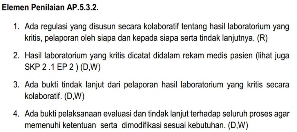 - didokumentasikan di rekam medik, bisa berupa stempel nilai kritis yang berisi hasil nilai kritis, paraf penerima laporan, dan paraf pemberi laporan.