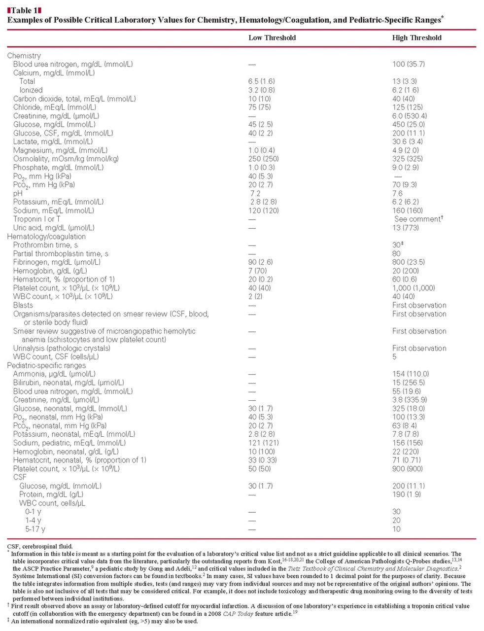 Genzen JR and Tormey CA. Pathology Consultation on Reporting of Critical Values. Am J Clin Pathol 2011;135:505-513