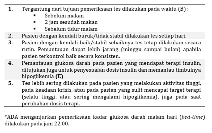 - menjelang waktu tidur (untuk menilai risiko hipoglikemia)