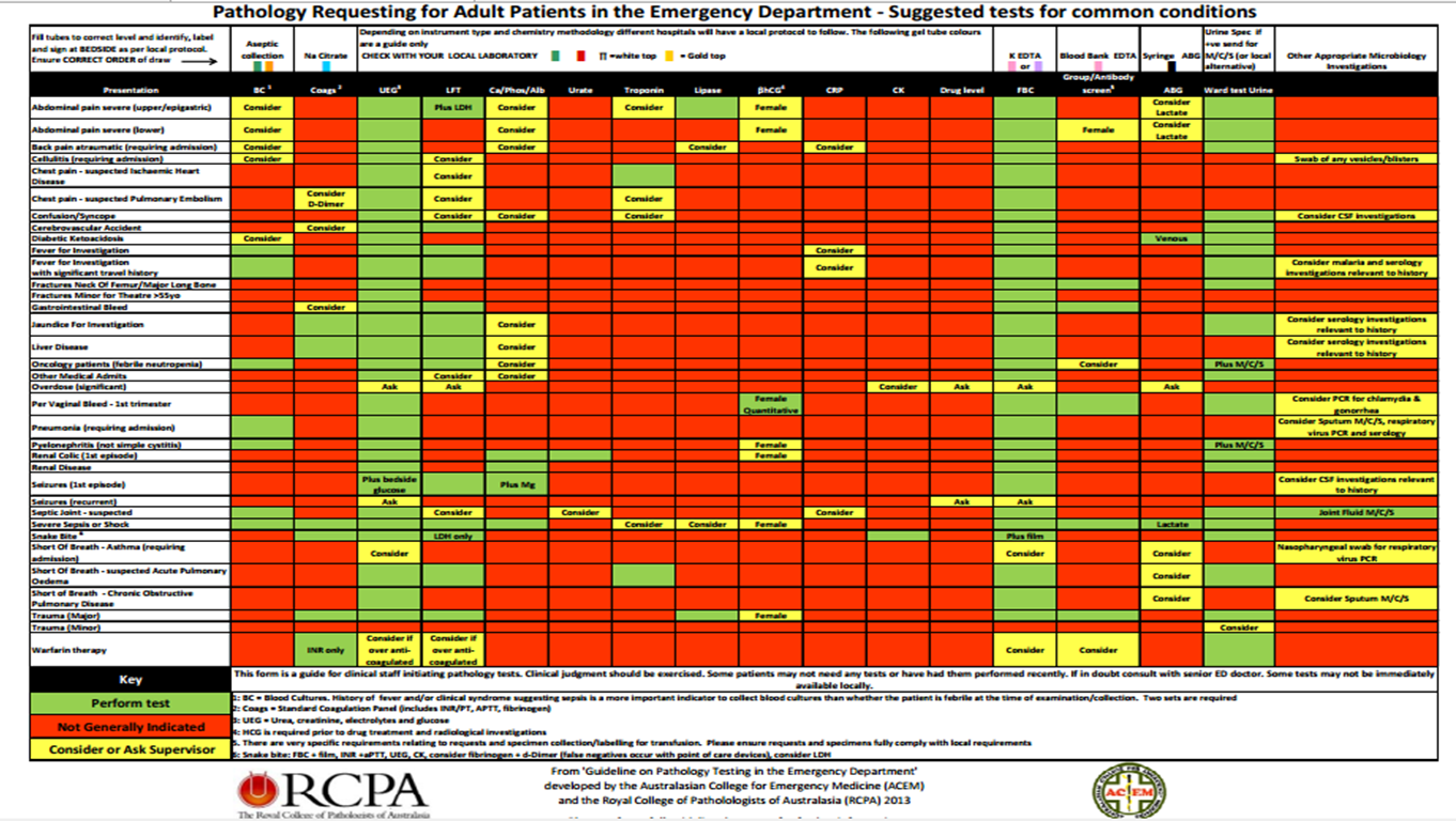 ACEM and RCPA. 2013. Guideline On Pathology Testing In The Emergency Department