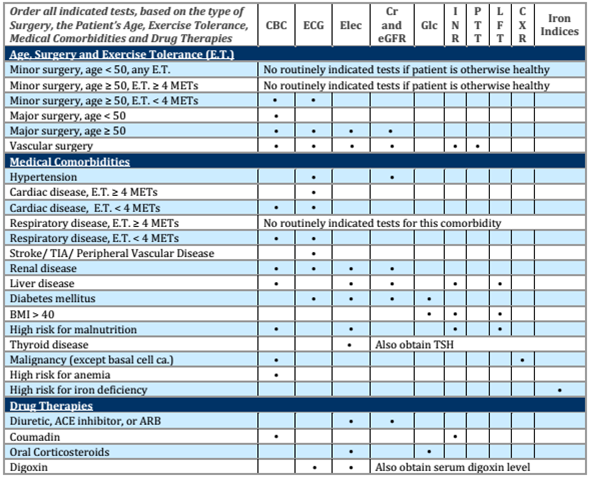 Martin SK and Cifu AS. 2017. Routine Preoperative Laboratory Tests for Elective Surgery. JAMA Clinical Guidelines Synopsis vol 318(6): 567-8