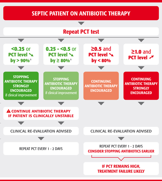 - PCT 2-10 ng/ml : Kemungkinan besar suatu infeksi sistemik, resiko tinggi untuk menjadi infeksi sistemik yang berat